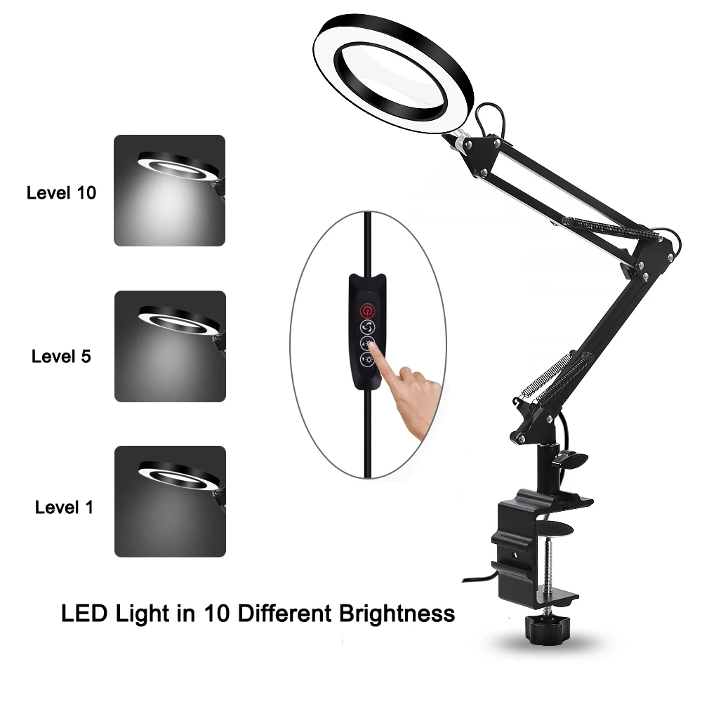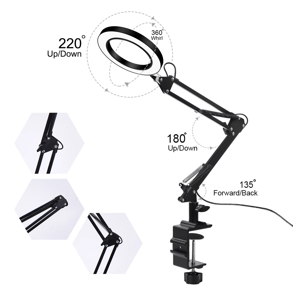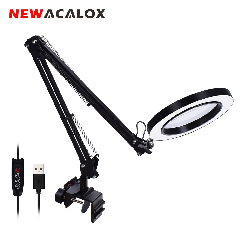 NEWACALOX Illuminated Magnifier 3 ColorUSB 5X Desk Lamp Magnifying Glass Soldering Third Hand Tool