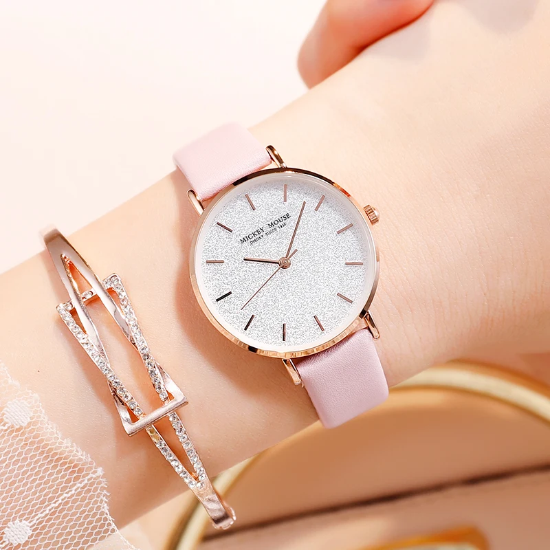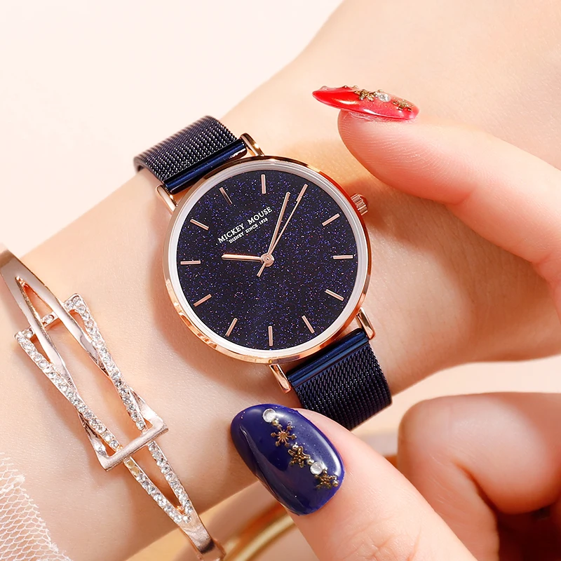 Disney Women Ladies Watches Fashion Stainless Steel Strap Leather Sky Shining Star Quartz Wristwatc