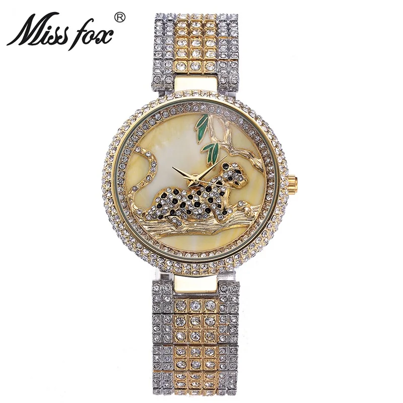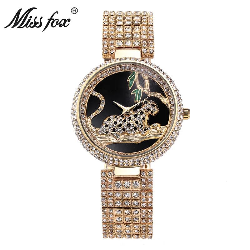 ORIGINAL Unique Dial Design Watches Women Luxury Leopard Rhinestone Stainless Steel Full Diamond Waterproof
